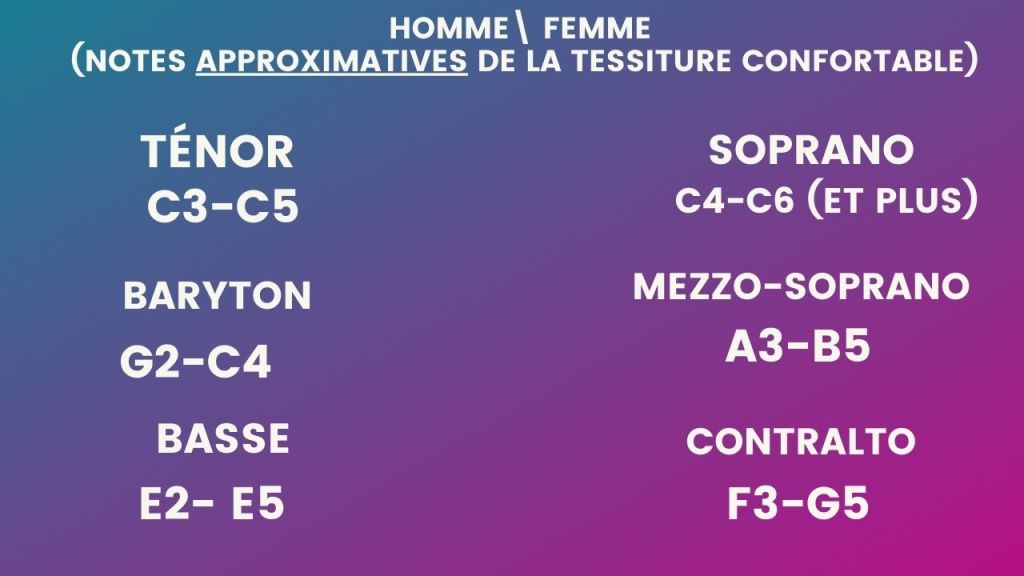 Sachez que la tessiture ainsi que d’autres critères aident à définir le type de voix : Soprano, mezzo, ténor…